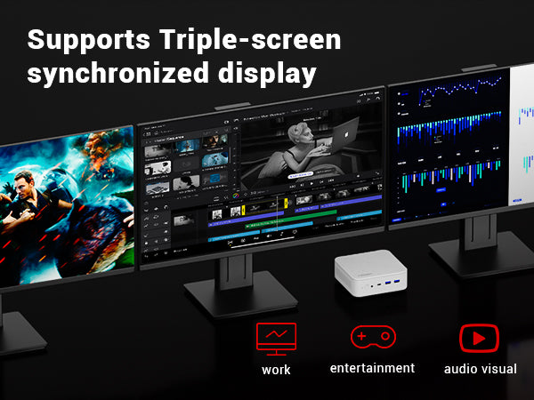 - ✔Multi-threaded Task Processing -- FIREBAT mini computer adopts the newly upgraded AMD Radeon 780M 2600MHz GPU, which provides powerful graphics processing capabilities, faster data processing speed, and is more suitable for handling a large number of multi-threaded tasks. It can connect to triple 4K monitors at the same time to output a clearer and more advanced picture quality. Powerful heat dissipation performance enables 7 x 24 hours of silent operation.
